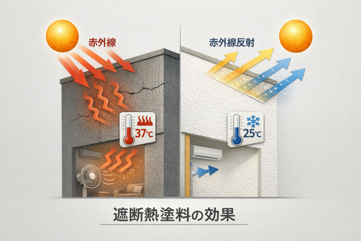 遮熱塗料は太陽光の中でも特に熱の原因となる紫外線を反射することで外壁の温度上昇を抑えます。